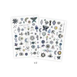 Contenido: 2 planchas de tatuajes temporales y 1 manual de instrucciones