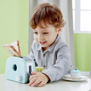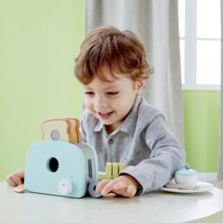 La tostadora de madera es una completa tostadora de colores agradables que incluye 13 piezas de madera como son: tostadas, mantequilla, 1 plato, 1 cuchillo, 1 yogur… ¡Recuerda que el desayuno es la comida más importante del día!