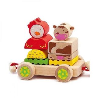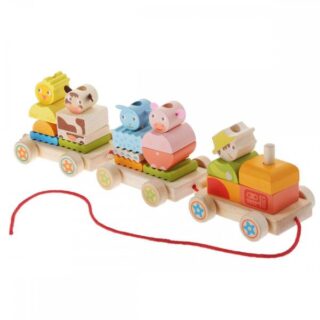 Contenido: 1 tren de 3 vagones y 20 piezas de madera.