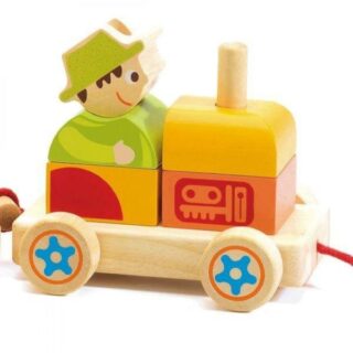 Un colorido tren de madera que el niño monta y decora dando rienda suelta a su imaginación.