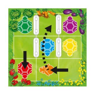 2-Mueve las tortugas y la liebre a su posición final. La posición final de cada animal está indicada por plantas que tienen el mismo color que el animal.