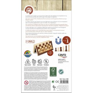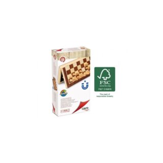 Estoig d’escacs plegable amb protecció mat. Tant el tauler com les peces són de fusta.