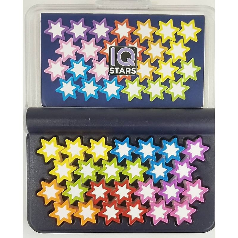 A IQ Stars el desafiament consisteix en col·locar les 7 peces del trencaclosques en forma d’estrella, sense deixar cap espai al tauler.