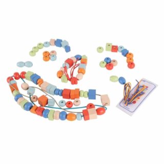 El set d’enfilar boles i formes és un joc de cordons amb el qual es pot fer un bonic collaret o polsera mentre es treballa la motricitat fina dels més petits.