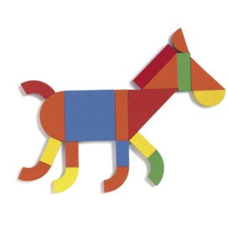 Un bonic maletí de fusta que conté 42 peces de fusta imantades i 24 models per a divertir-se reproduint tot tipus de formes: personatges, animals, vehicles i escenes.