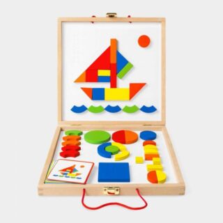 Contingut: 1 maletí de fusta de 31 x 31 cm, 42 peces magnètiques de fusta i 24 targetes model.