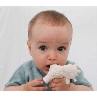 Està fet de cautxú natural totalment biodegradable i sostenible. Fabricat a mà, decorat amb pigments de qualitat alimentària i hermètic, totalment segur per al nadó.