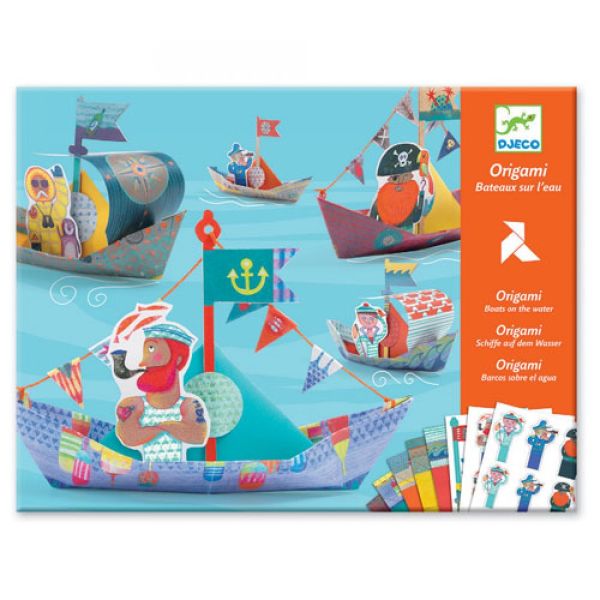 Mariners! Aquest estoig d’origami serveix per a fer 15 vaixells de paper. Seguint les instruccions del quadernet, el nen doblega les fulles estampades per a fer les seves embarcacions i després les personalitza amb els accessoris inclosos. Increïble: el casc d’aquests vaixells és resistent a l’aigua!