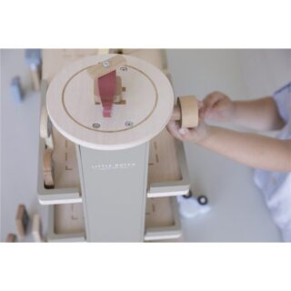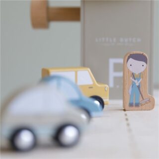 El garatge de fusta és un dels molts jocs que es poden connectar al joc de trens Little Dutch.