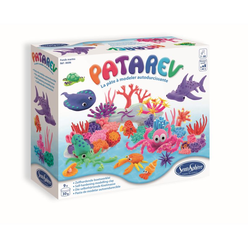 Crea figures del mar com corals, petxines i peixos amb Patarev, una argila creativa moldejable amb una textura única.
