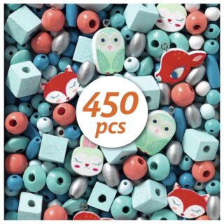 Amb aquestes 450 perles fetes de fusta i els 6 metres de fil podràs crear collarets i polseres de tots els colors! La grandària de les peces i del fil fa que sigui fàcil filar. Estimularem la motricitat fina i fins i tot la seqüenciació, tot mentre ens ho passem bé i gaudim creant.