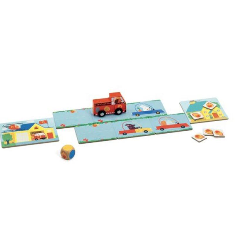 Contingut: 12 fitxes de cotxes/carretera lliure, 1 parc de bombers, 1 casa, 7 fitxes de foc, 1 camió de bombers i 1 dau de fusta. Regles del joc en 10 idiomes.