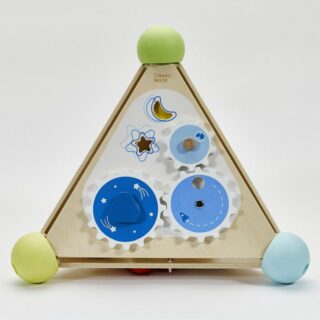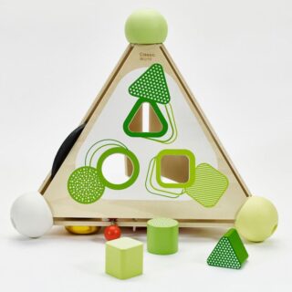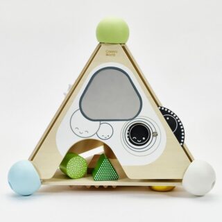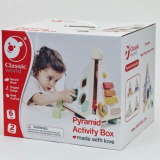 La piràmide d’activitats és una caixa d’activitats amb forma piramidal que té diferents funcions en els diferents costats com són: blocs de classificació de formes, 1 mirall per a l’autodescobriment, rodes per a la motricitat fina, música i campanes per a crear melodies… Totes les funcions estan dissenyades per a potenciar que els nens i nenes desenvolupin les seves habilitats.