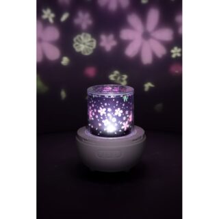 Projector de llum musical USB amb 8 melodies diferents que es pot activar o desactivar i 3 histories incloses (fons marí, de planetes i de flors).