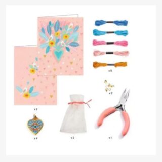 En aquesta bonica caixa brillant hi ha una varietat d’amulets i cintes per a crear 2 polseres.