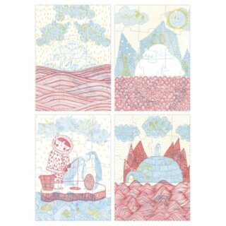 “Dans l’Igloo” és un Kit de 4 puzles progressius de 9 a 20 peces grans perquè els més petits les puguin manipular més fàcilment.