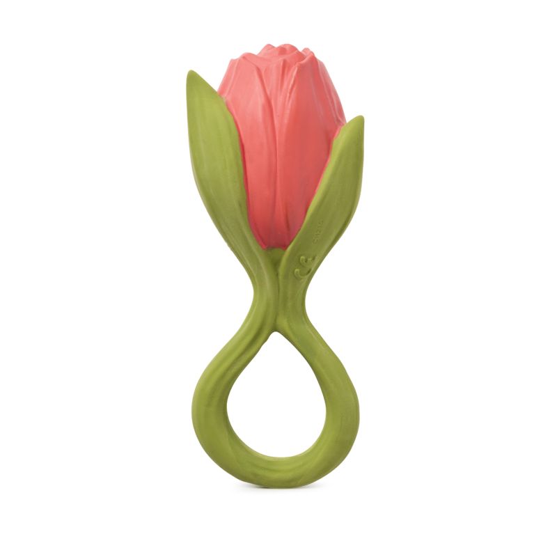 Un ram per a qui més estimes! Theo the Tulip és un mossegador, joguina de bany i joc sensorial per a bebès. La seva forma d’anella fa que les manetes dels bebès puguin subjectar-ho fàcilment mentre juguen amb un mossegador natural i segur. La seva àmplia varietat de textures estimula els sentits del bebè i calma les genives durant la dentició.