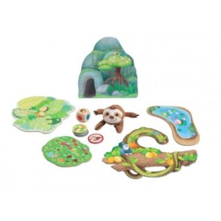 Contingut: 1 peresós, 5 llocs per amagar-se, 5 fitxes, 1 dau, 1 instruccions del joc.